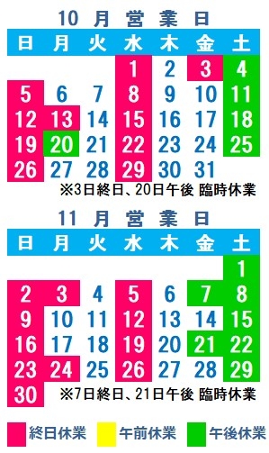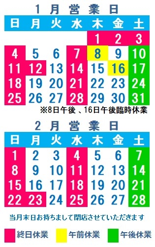 ご来店予定のお客様は当ホームページの営業カレンダーをご確認ください。